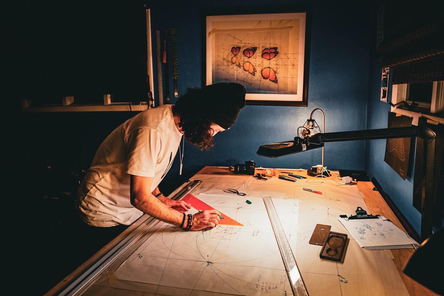 Today, Anthony specializes in large-scale geometrical works created entirely by hand with ink, utilizing his grandfather's traditional drafting tools. For Anthony, creating art is a meditative process that has guided him through life's challenges.