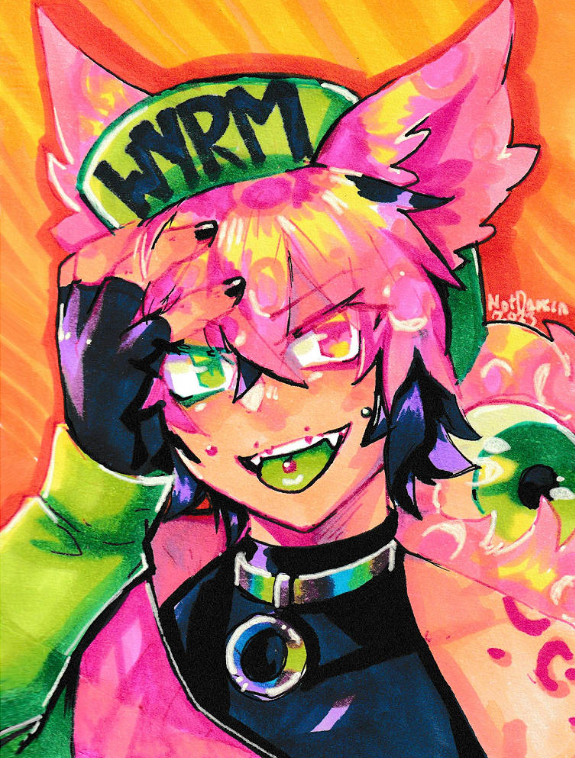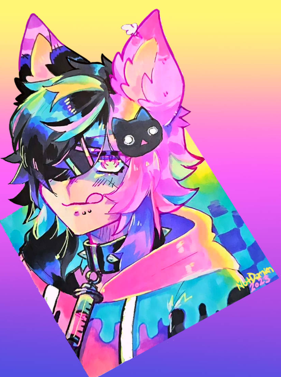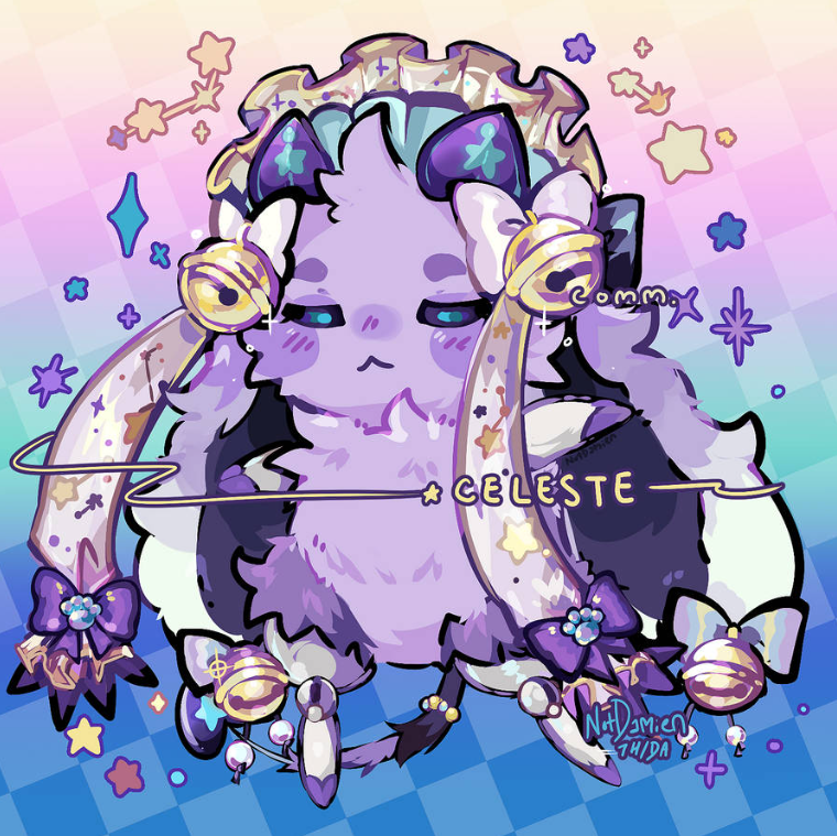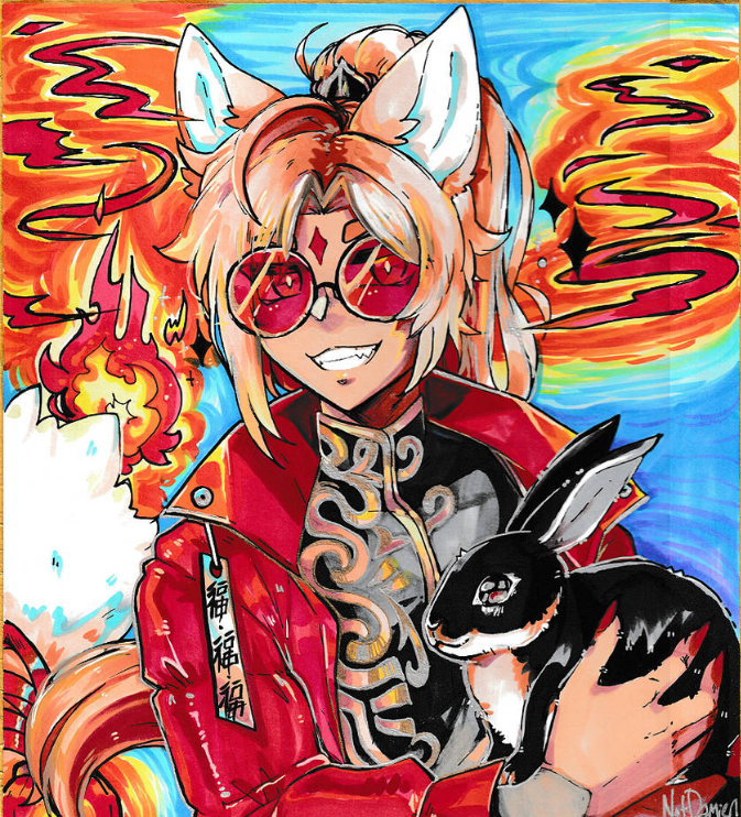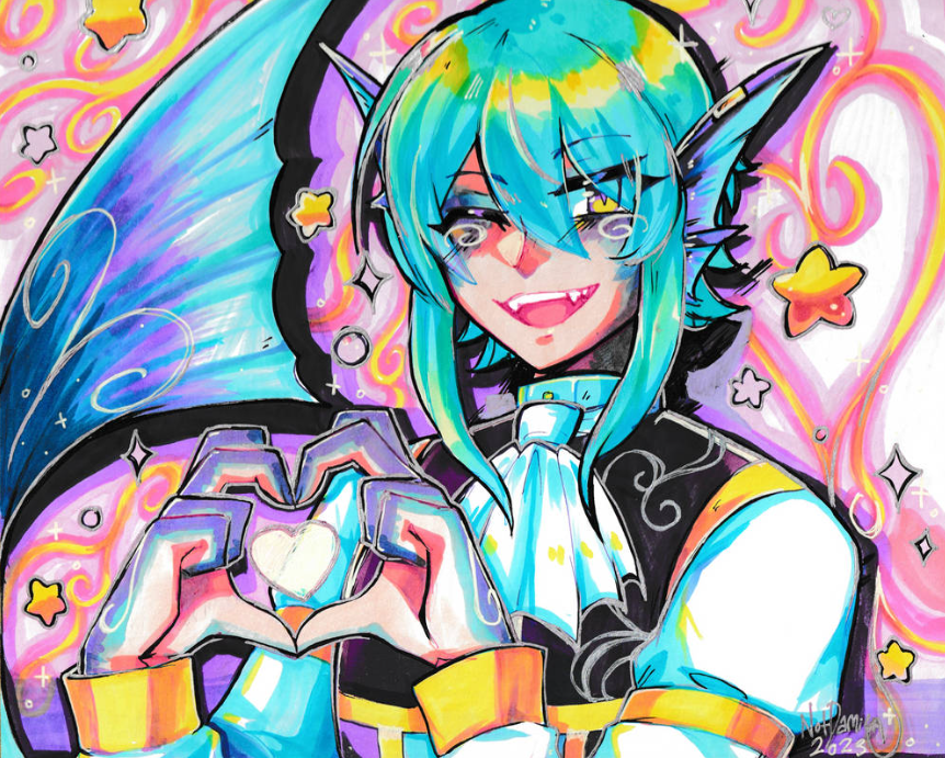 In his artwork, you’ll find bold colors and patterns with a distinct pattern of cell shading all his own. Check out his website to see everything from emotes, v-tuber artwork, and cute portraits!